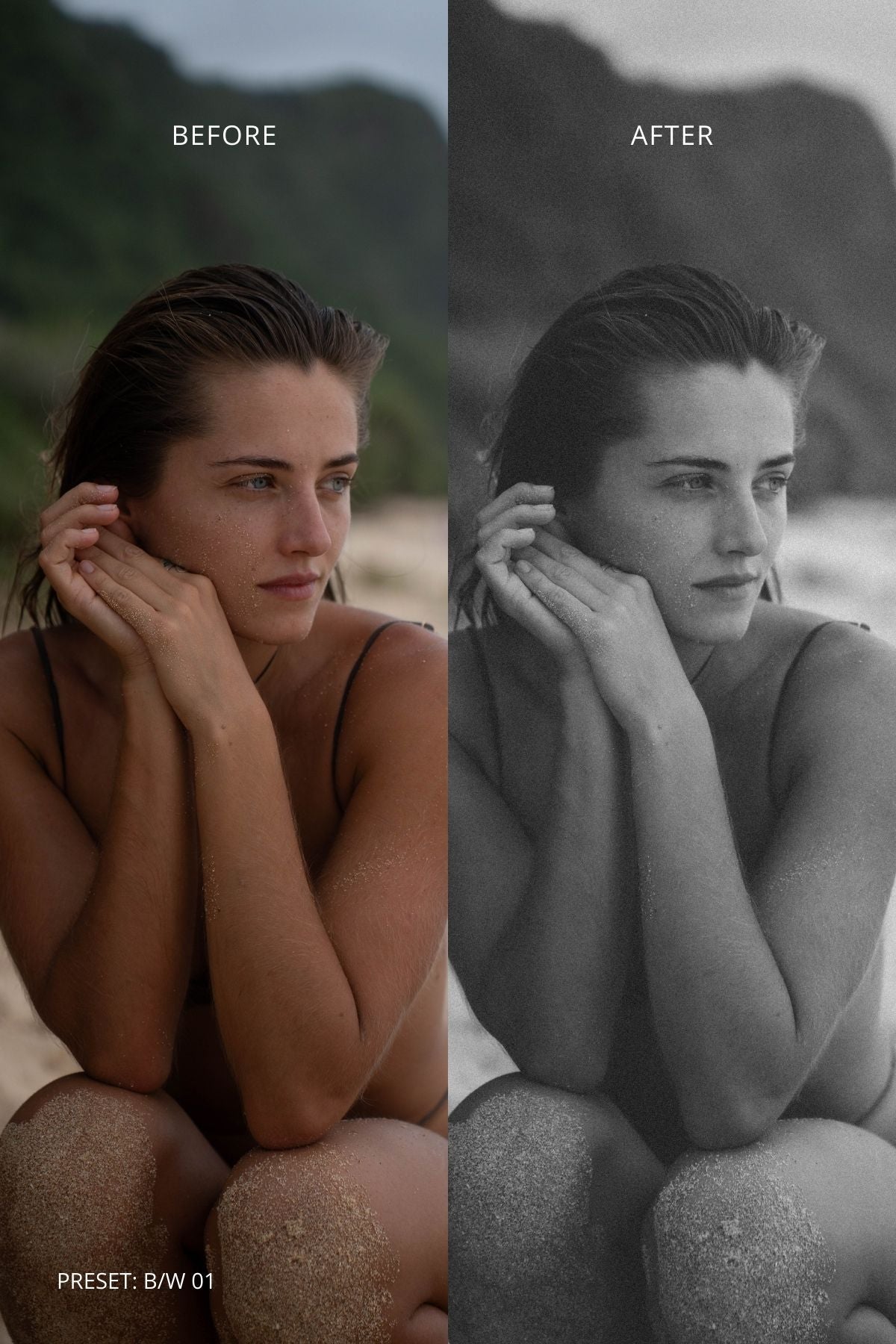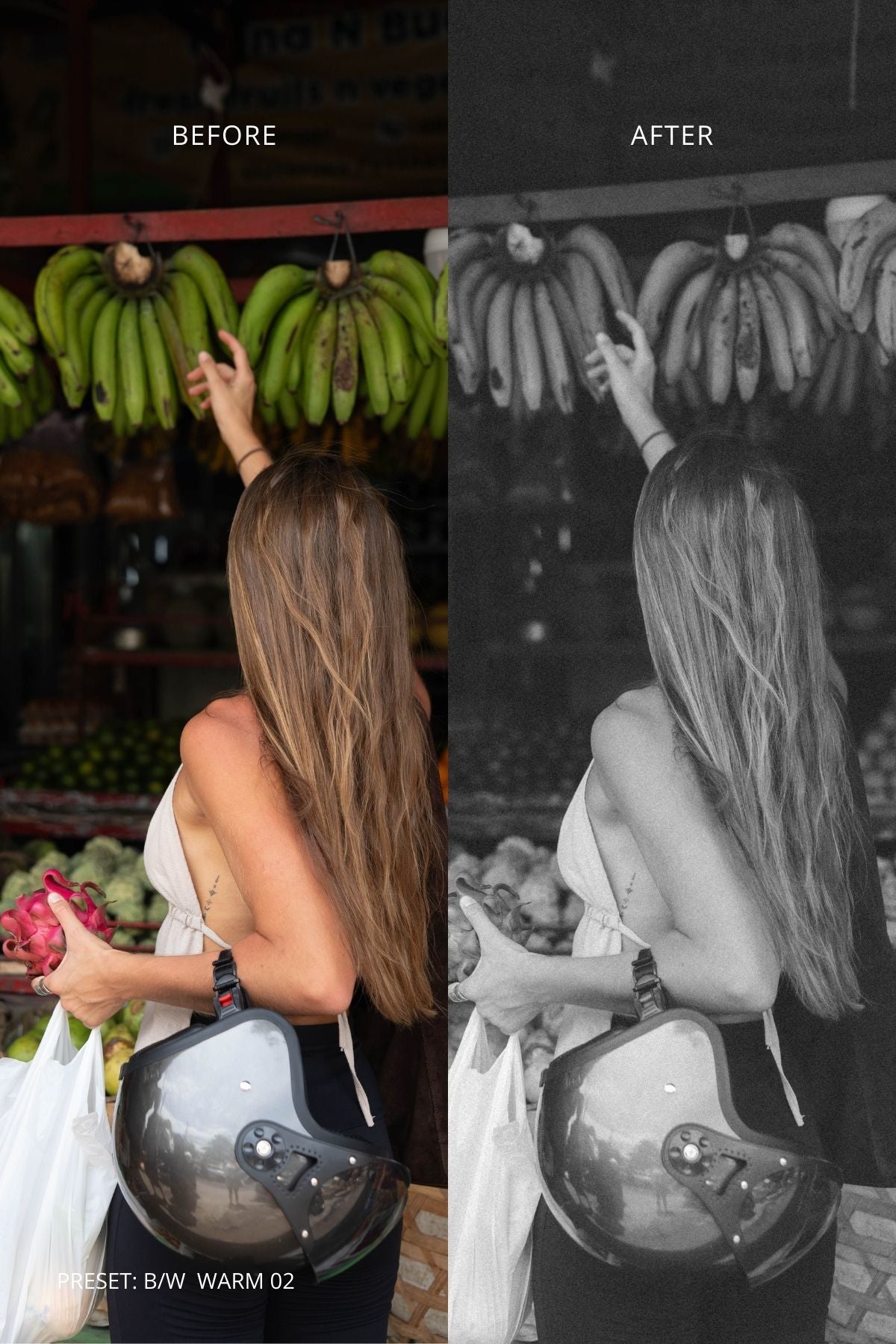The collection includes 8 thoughtfully crafted presets - 3 black & white presets and 5 color presets - designed to bring a soft, retro-inspired yet modern aesthetic to your photos.